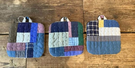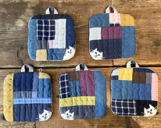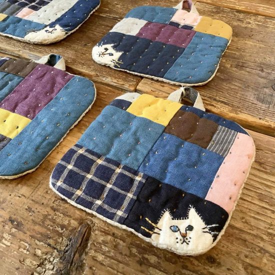 「ポットマット」 ネコさんと、シンプルパッチワーク